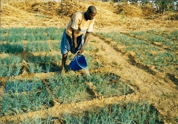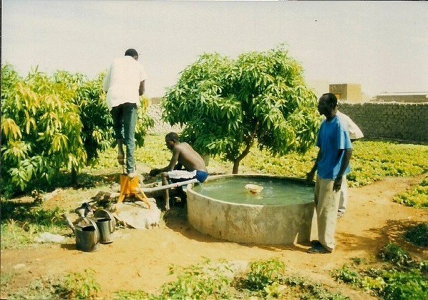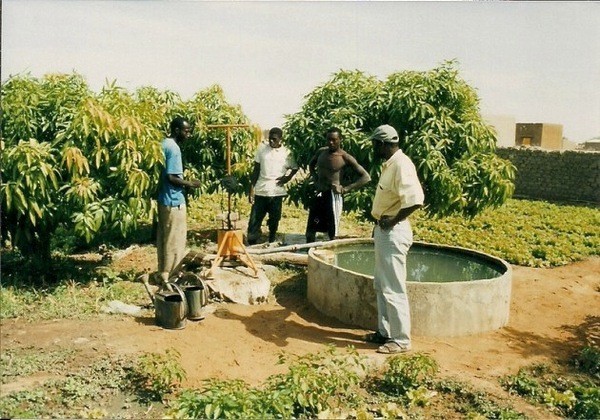 Zusätzlich zum Regenfeldbau betreiben die Einwohner von Somadougou während der Trockenzeit auch bewässerten Gartenbau. Dieser erfordert sehr viel körperliche Arbeit, vor allem, um das Wasser zu den Parzellen zu transportieren. Um den Gärtnern die Arbeit zu erleichtern, wurde im Jahr 2002 mit finanzieller Unterstützung durch die khg Göttingen eine mechanische Wasserpumpe im Dorf eingeführt.