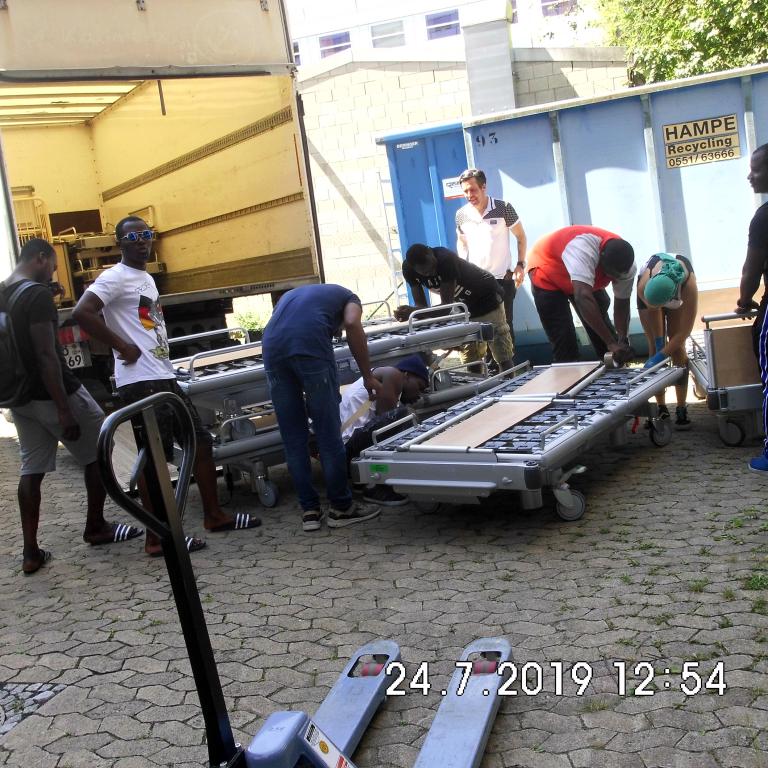 Das Projekt fing 2017 mit einer kleinen Spendenaktion an und etablierte sich über die folgenden Jahre zu einer erfolgreichen Zusammenarbeit mit dem globalen Süden. Dafür haben wir bereits diverse Spenden, wie Krankenhausbetten von dem St. Bernward Krankenhaus und der Helios Klinik aus Hildesheim erhalten. Auch das evangelische Krankenhaus Göttingen hat uns mit weiterem medizinischem Zubehör unterstützt. Das Pflegezubehör von der Senioren Residenz Grone, die Fahrräder von Fahrrad-Doc und die Computer von der Universität Göttingen haben ebenso geholfen, wie die vielen kleinen Spenden von Privatpersonen, die uns erreichten. Ohne die entsprechenden Lagermöglichkeiten unseres Spediteurs für all diese Spenden, wäre das gesamte Projekt kaum möglich.